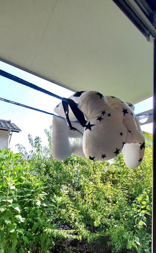 我が家はエアバギーを使用しているので、すぐ外せる肩ベルトも一緒に洗います。