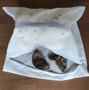 ベビーカーシート クッションを洗う際には、必須の洗濯ネット。