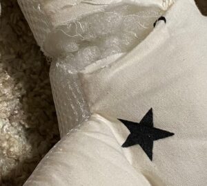 中綿はこのようにしっかり詰まっています。(洗濯ネットなしで洗濯してしまい、破損に繋がった事例でもあります。重複してしまいますが、洗濯機に入れる際は必ず洗濯ネットに入れて洗濯して下さい。)