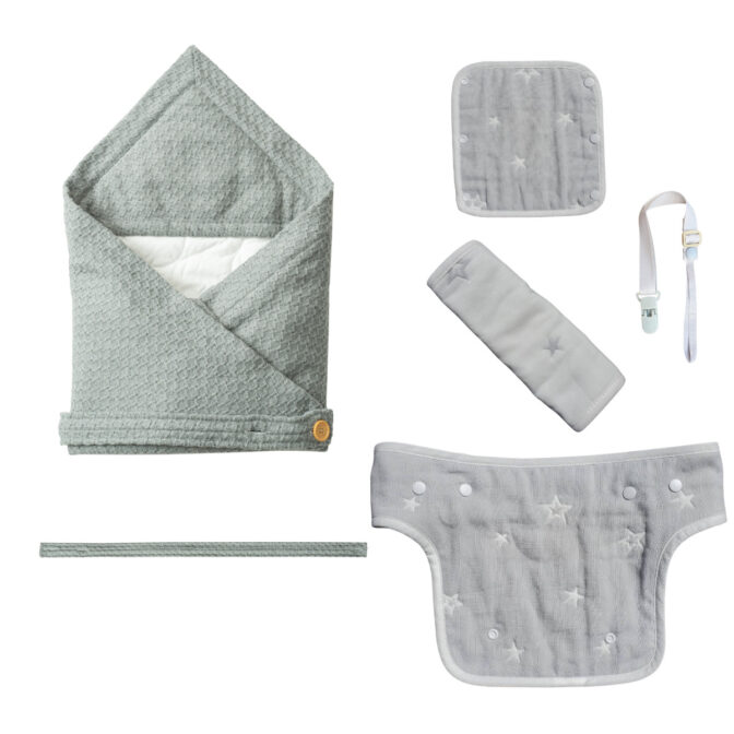出産祝いギフトセット おくるみ&よだれカバー ユニセックス 2点 (グレー)…