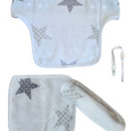 抱っこ紐用よだれカバー 6重ガーゼ 綿100% (グレーミックス星柄胸当て付3枚セット)…