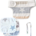 抱っこ紐用よだれカバー 6重ガーゼ 綿100% (ブルーミックス星柄 胸当て付 3枚セット)